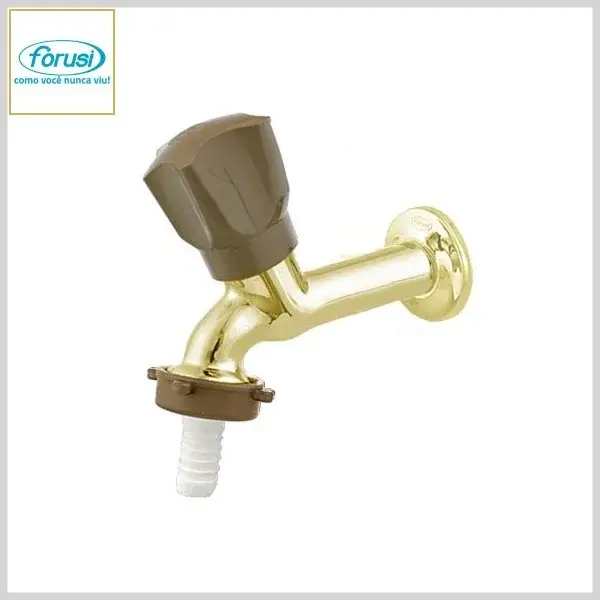 Torneira de Jardim 1130 SoftClick Mvs Parede Curta Dourado - Saída c/Bico, Volante Abs - Forusi