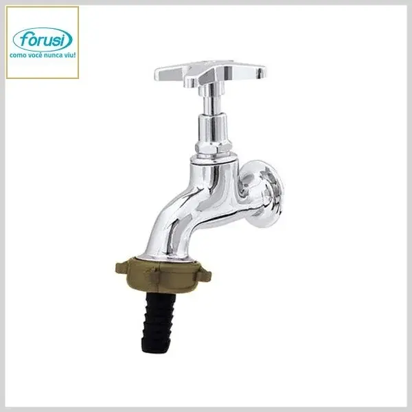 Torneira de Jardim 1146 C-23 M18 Parede Curta Cromado - Saída c/Bico, Volante Metal - Forusi