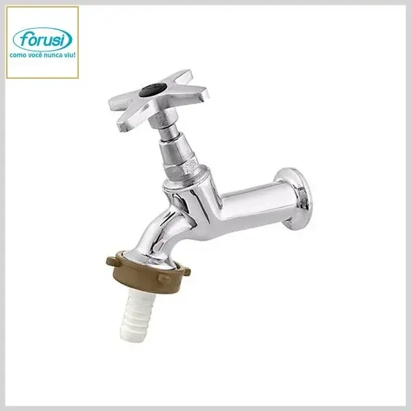 Torneira de Jardim 1148 C-23 M18 Parede Curta Cromado - Saída c/Bico, Volante Metal - Forusi