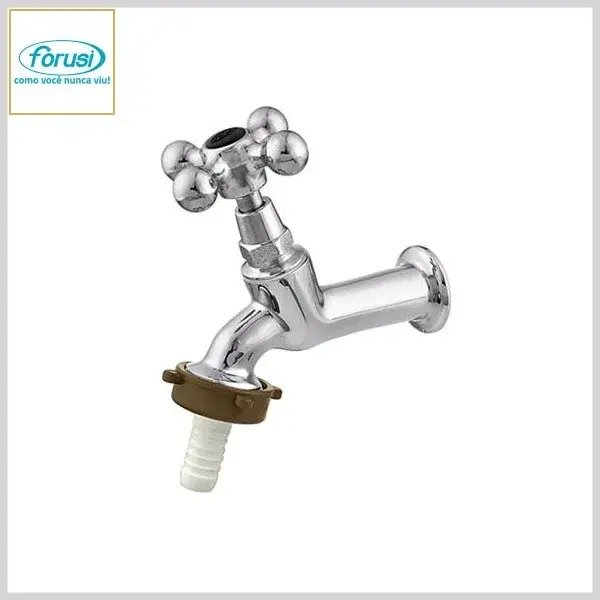 Torneira de Jardim 1148 C-33 M18 Parede Curta Cromado - Saída c/Bico, Volante Metal - Forusi