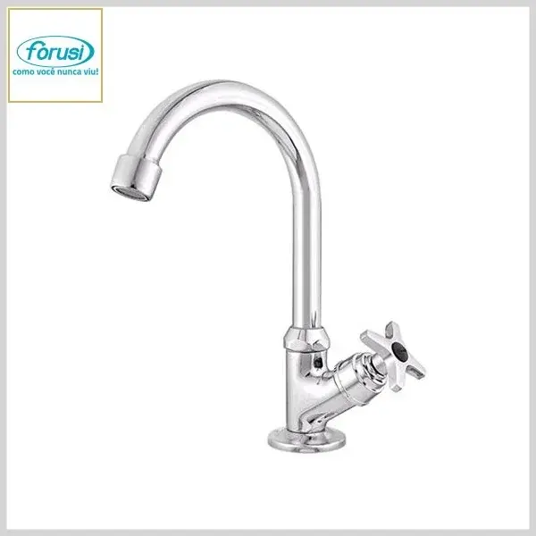 Torneira de Lavatório 1194 C-23 Mvs Mesa Bica Móvel Cromado - Arejador Fixo, Volante Metal - Forusi
