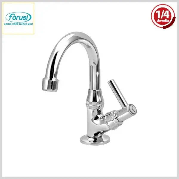 Torneira de Lavatório 1194 C-55 Luxo 45º 1/4Volta Mesa Bica Móvel Cromado - Arejador Fixo, Volante Metal - Forusi