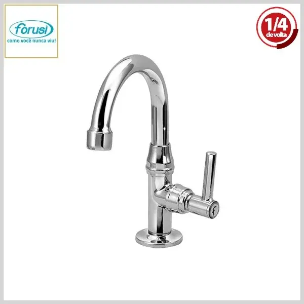 Torneira de Lavatório 1194 C-55 Luxo 90º 1/4Volta Mesa Bica Móvel Cromado - Arejador Fixo, Volante Metal - Forusi