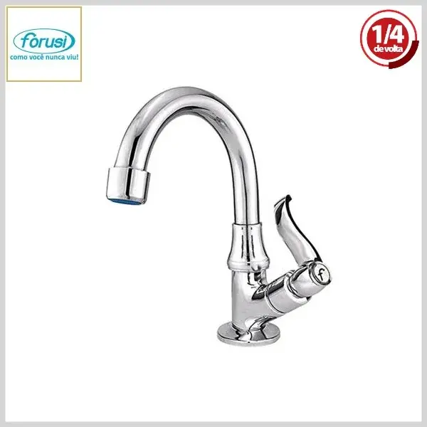 Torneira de Lavatório 1194 C-56 Luxo 1/4Volta Mesa Bica Móvel Cromado - Arejador Fixo, Volante Metal - Forusi