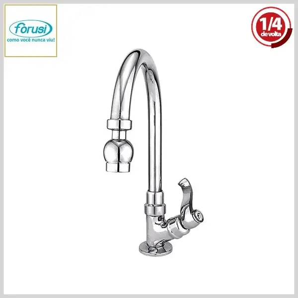 Torneira de Lavatório 1194 C-56 MegaLine Clean 1/4Volta Mesa Bica Móvel Cromado - Arejador Fixo, Volante Metal - Forusi