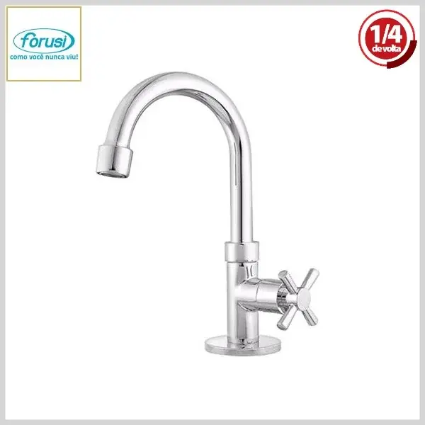 Torneira de Lavatório 1194 Cross Luxo 1/4Volta Mesa Bica Móvel Cromado - Arejador Fixo, Volante Metal - Forusi