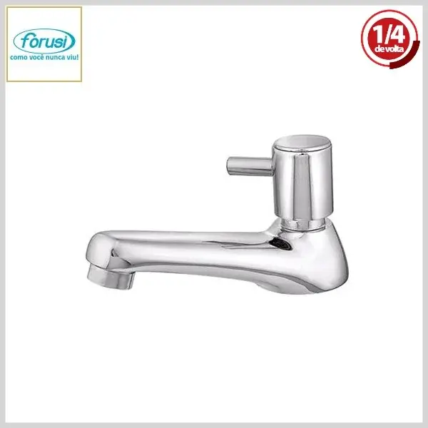 Torneira de Lavatório 1194 Galiza Luxo 1/4Volta Mesa Bica Fixa Cromado - Arejador Fixo, Volante Metal - Forusi
