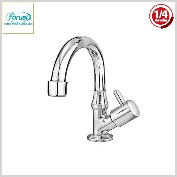 Torneira de Lavatório 1194 Galiza Luxo 1/4Volta Mesa Bica Móvel Cromado - Arejador Fixo, Volante Metal - Forusi