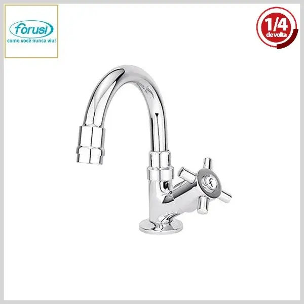 Torneira de Lavatório 1194 Náutica Alpha 1/4Volta Mesa Bica Móvel Cromado - Arejador Fixo, Volante Metal - Forusi