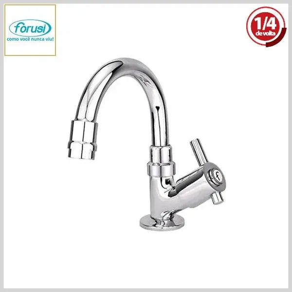 Torneira de Lavatório 1194 Realce Alpha Luxo 1/4Volta Mesa Bica Móvel Cromado - Arejador Fixo, Volante Metal - Forusi