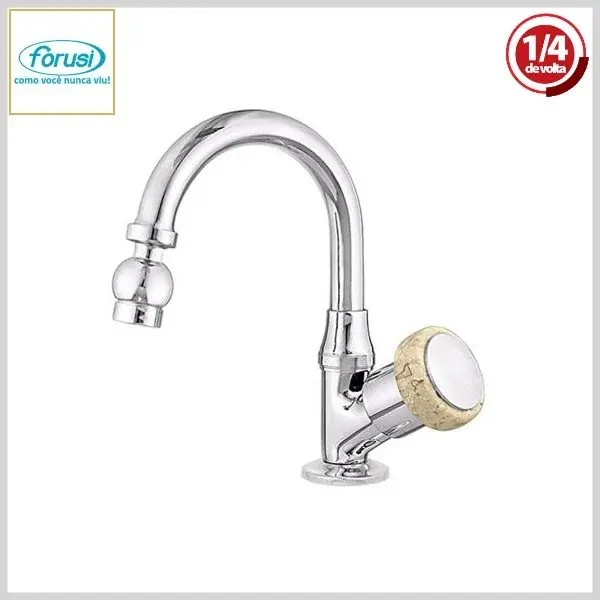 Torneira de Lavatório 1194 Saturno Travertino Plus 1/4Volta Mesa Bica Móvel Cromado - Arejador Fixo, Volante Metal - Forusi
