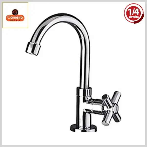 Torneira de Lavatório 1198 C54 Savanah Mesa Bica Móvel 1/4Volta Cromado - Arejador Fixo, Volante Metal - Carneiro Metais