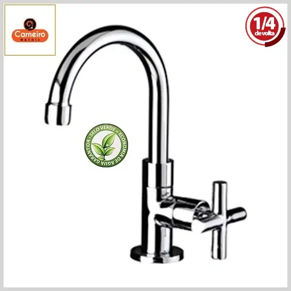 Torneira de Lavatório 1198 C64 Border Mesa Bica Móvel 1/4Volta Cromado - Arejador Fixo, Volante Metal - Carneiro Metais