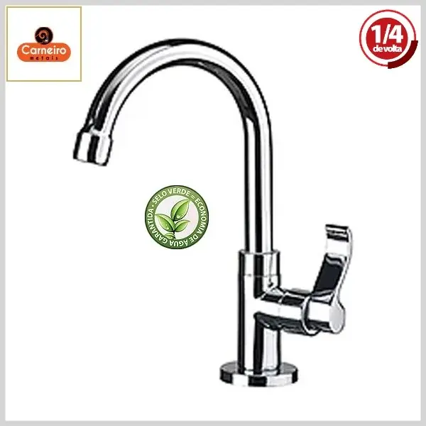 Torneira de Lavatório 1198 C66 Cheviot Mesa Bica Móvel 1/4Volta Cromado - Arejador Fixo, Volante Metal - Carneiro Metais
