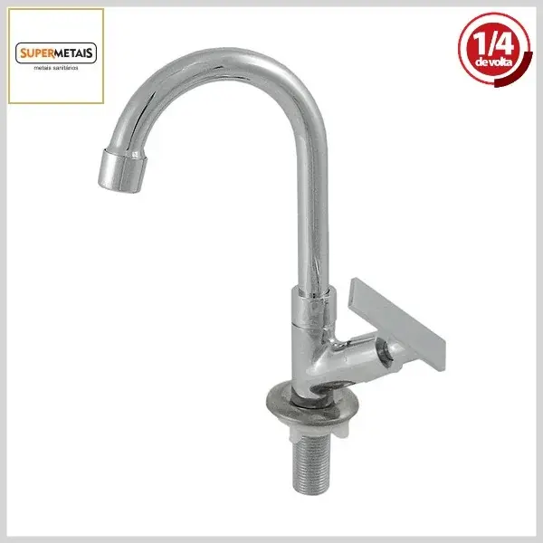 Torneira de Lavatório 2030 C29 Met Mesa Bica Móvel Cromada - Vedação ¼Volta, Saída c/Arejador - Supermetais