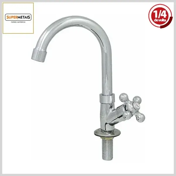 Produto com corpo e volante em metal cromado, sendo indicado para uso em pias e cubas de lavabos, banheiros e similares. Possui entrada em 1/2" e sistema de vedação 1/4Volta Mvc cerâmico.