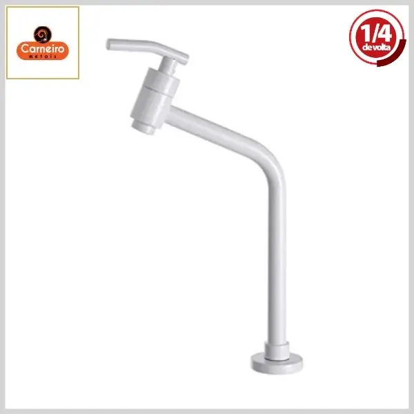 Torneira de Lavatório C62 Boer Decor Mesa Bica 45º Alta 1/4Volta White - Arejador Fixo, Volante Metal - Carneiro Metais