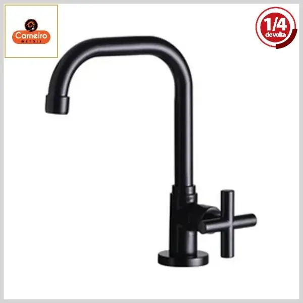 Torneira de Lavatório C64 Border Decor Mesa Bica 90º Móvel 1/4Volta Black - Arejador Fixo, Volante Metal - Carneiro Metais