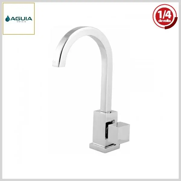 Torneira de Lavatório Quadrat 7002 Mesa Bica Alta (Cromado) - 1/2 pol - ¼ Volta - Águia Metais