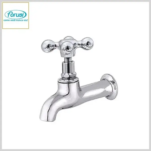 Torneira de Tanque 1143 C-33 M18 Parede Curta Cromado - Saída s/Arejador, Volante Metal - Forusi