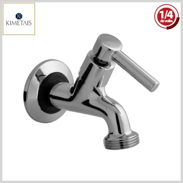 Torneira de Tanque/Jardim 1028 C01 Alfa Parede 70mm 1/4Volta Cromado - Saída c/Rosca, Volante Metal - Kimetais