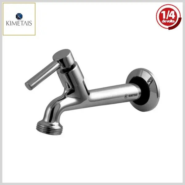 Torneira de Tanque/Jardim 1033 C01 Alfa Parede 130mm 1/4Volta Cromado - Saída c/Rosca, Volante Metal - Kimetais