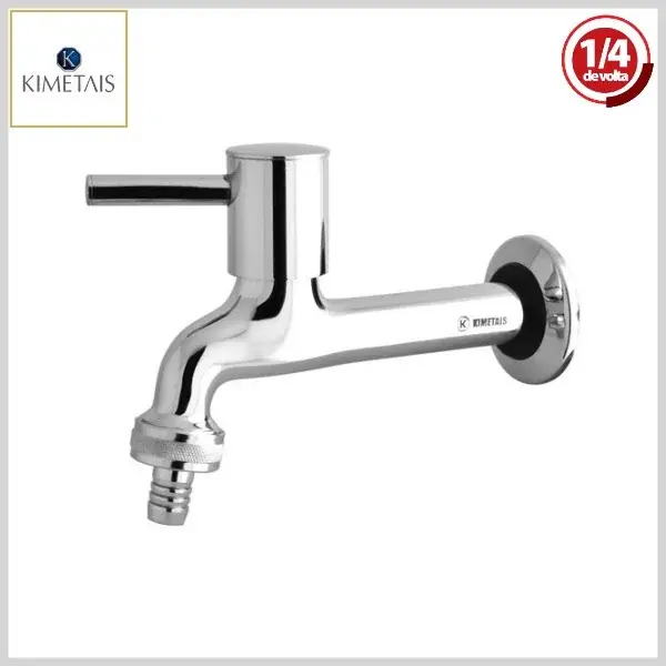 Torneira de Tanque/Jardim 1133 C58 DelicattaSlim Parede 130mm 1/4Volta Cromado - Saída c/Bico, Volante Metal - Kimetais