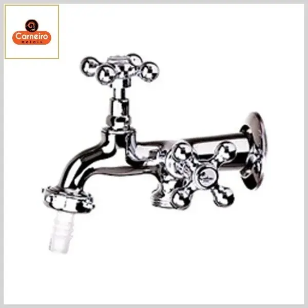 Torneira de Tanque/Máquina 1153 C38 South Parede M18 Cromado - Saída c/Bico, Volante Metal - Carneiro Metais