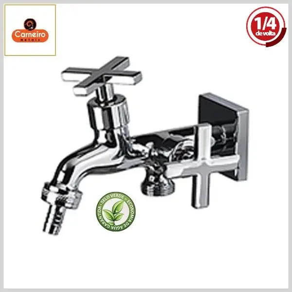 Torneira de Tanque/Máquina 1153 C56 Bovska Parede 1/4Volta Cromado - Saída c/Bico, Volante Metal - Carneiro Metais