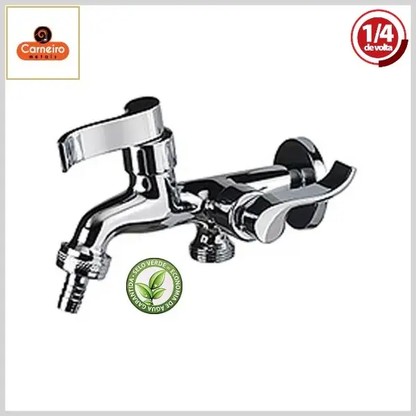 Torneira de Tanque/Máquina 1153 C66 Cheviot Parede 1/4Volta Cromado - Saída c/Bico, Volante Metal - Carneiro Metais