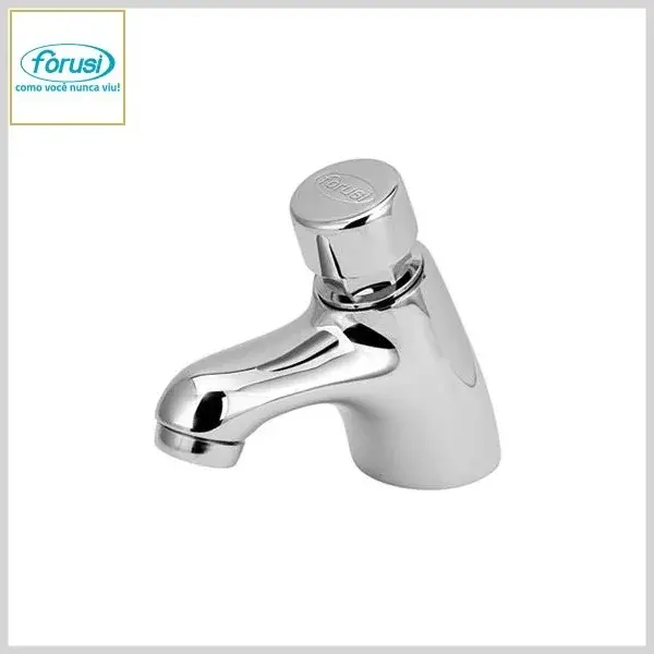 Torneira Economizadora Lavatório 1190 Forusimatic Junior Luxo Mesa AçoInox - Arejador Fixo, Acionador Inox - Forusi