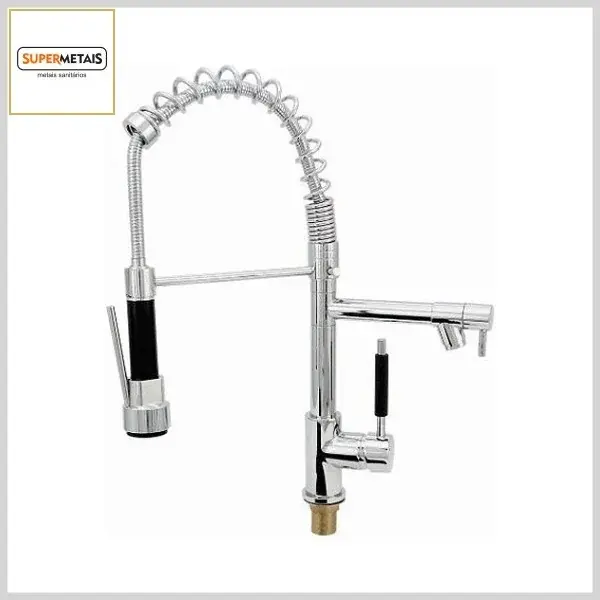 Torneira Monocomando 1205 Gourmet Mesa Bica Baixa Flexível Cromada - Vedação Mvc, Saída c/Regulador - Supermetais