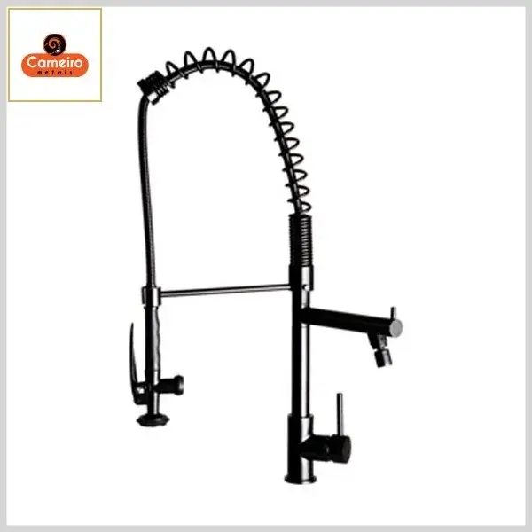 Torneira Monocomando Cozinha 1208 Decor Gourmet Mesa Black - Bica Flexível, Volante Metal - Carneiro Metais
