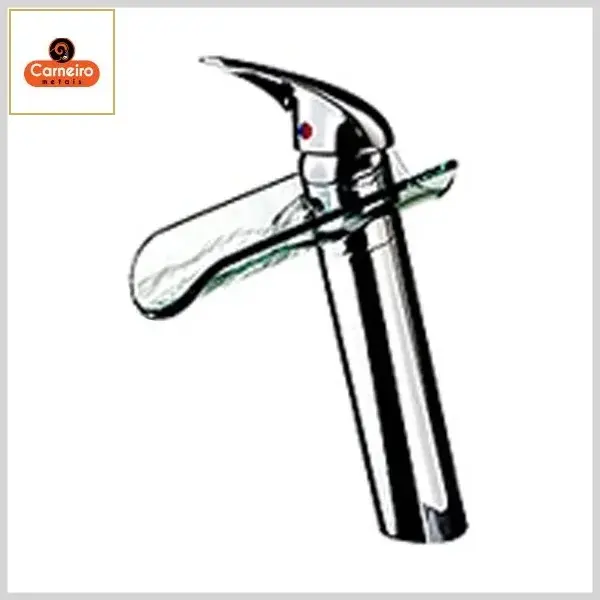 Torneira Monocomando Lavatório 1204 Mesa Bica MeiaCana Baixa Vidro c/Cromado - Bica Fixa, Volante Metal - Carneiro Metais