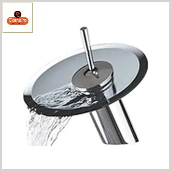 Torneira Monocomando Lavatório 1232 Mesa Bica Redonda Baixa Vidro Fumê c/Cromado - Bica Fixa, Volante Metal - Carneiro Metais