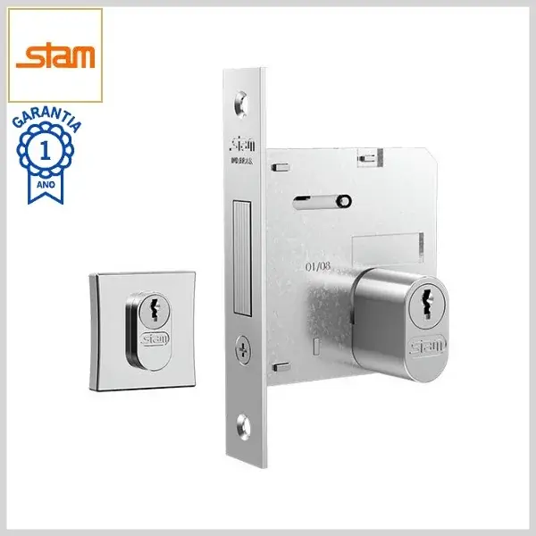Trava Auxiliar Classic 1007 Broca45mm Chave Tetra s/Maçaneta c/Roseta Zamac Quadrada - Cromado - Stam
