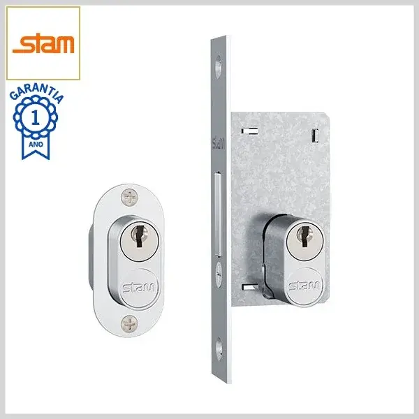 Trava Auxiliar Standard 601A Broca20mm Chave Simples s/Maçaneta c/Espelho Inox - Cromado - Stam