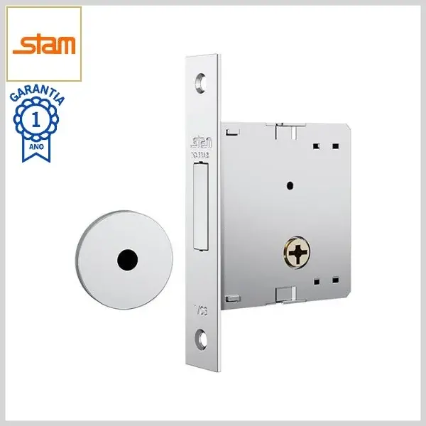 Trava Auxiliar Standard 1002 Broca40mm Chave Tetra s/Maçaneta c/Roseta Inox Redonda - Cromado - Stam