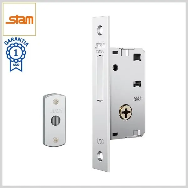 Trava Auxiliar Standard 1003 Broca18mm Chave Tetra s/Maçaneta c/Espelho Inox - Cromado - Stam