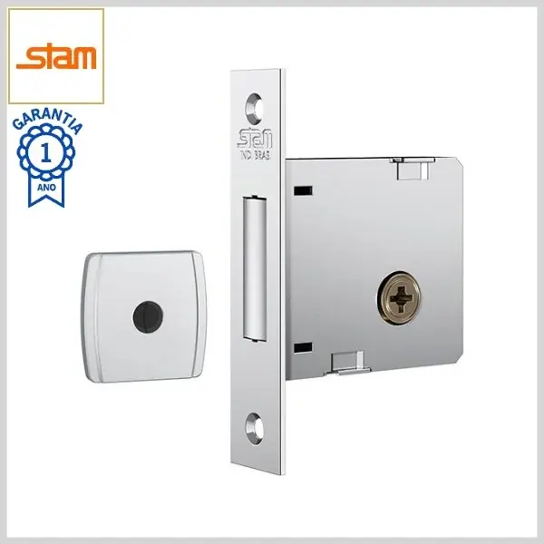 Trava Auxiliar Standard 1004 Broca40mm Chave Tetra s/Maçaneta c/Roseta Inox Quadrada - Cromado - Stam