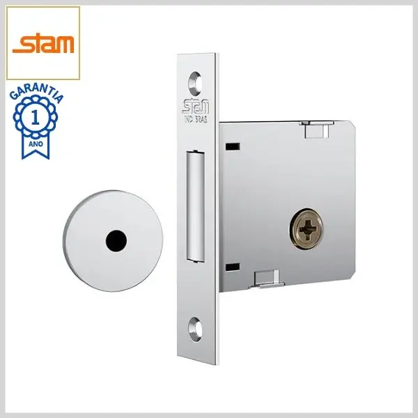 Trava Auxiliar Standard 1004 Broca40mm Chave Tetra s/Maçaneta c/Roseta Inox Redonda - Cromado - Stam