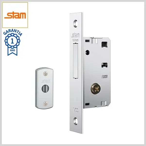 Trava Auxiliar Standard 1009 Broca18mm Chave Tetra s/Maçaneta c/Espelho Inox - Cromado - Stam