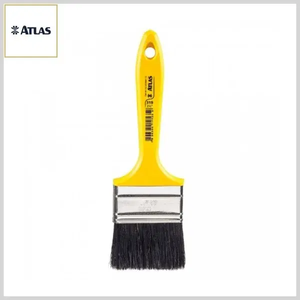 TRINCHA ATLAS 319 é fabricada em 8 tamanhos. Com média espessura e cerdas pretas selecionadas, apresenta melhor acabamento. É indicada para pinturas com tintas à óleo ou esmaltes.