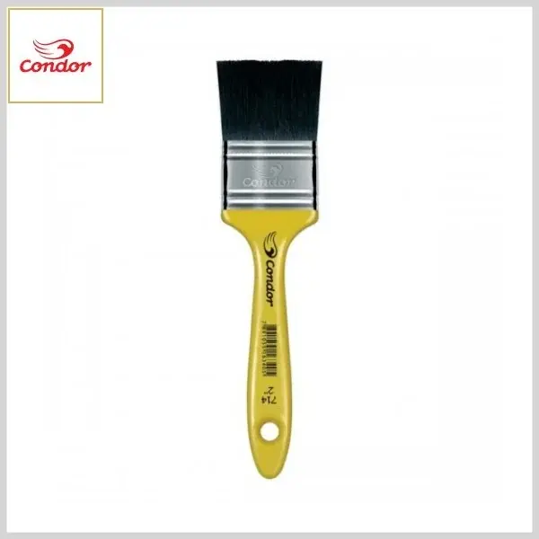 TRINCHA CONDOR 714 é fabricada em 8 tamanhos. Com cerdas pretas médias, apresentando excelente acabamento e ótima resistència ao desgaste, é indicada para pinturas com tintas esmalte e à óleo, sendo apropriada para acabamentos e retoques em geral.