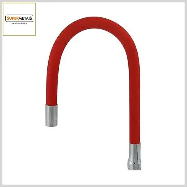 Produto com corpo em metal colorido, sendo indicado para uso como peça de substituição de bicas fixas ou móveis em torneiras de mesa ou parede, em pias de cozinhas, churrasqueiras e similares. Possui estrutura flexível, sendo adaptável à maioria das torneiras de bica móvel alta existentes no mercado.