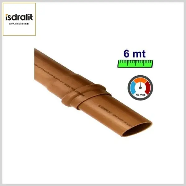 Tubo PVC Água Fria JE Classe15 75mca (Barra 6m) - DN 40mm / DE 50mm - Isdralit