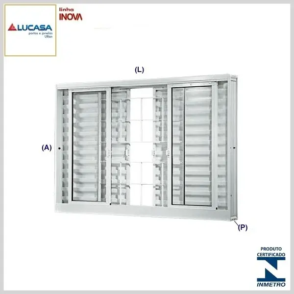 > Veneziana de Correr Central (Aço Galv, Linha Inova) Grade Quadrada