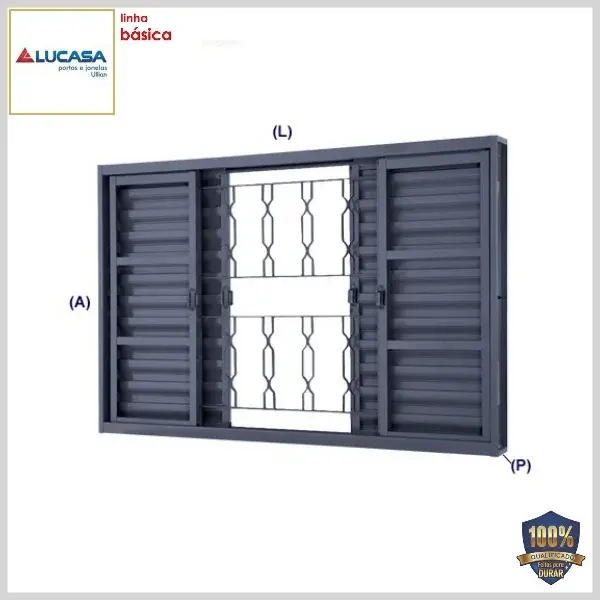 Veneziana de Correr Central (Aço, Linha Básica) Grade Mosaico - Medidas: 100[A] x 120[L] x 13[P] cm - Lucasa