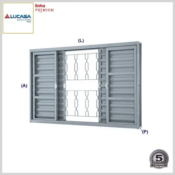 Veneziana de Correr Central (Aço, Linha Premium) Grade Mosaico - Medidas: 100[A] x 120[L] x 13[P] cm - Lucasa