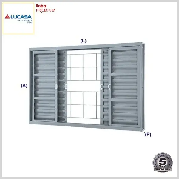 Veneziana de Correr Central (Aço, Linha Premium) Grade Quadrada - Medidas: 100[A] x 120[L] x 13[P] cm - Lucasa